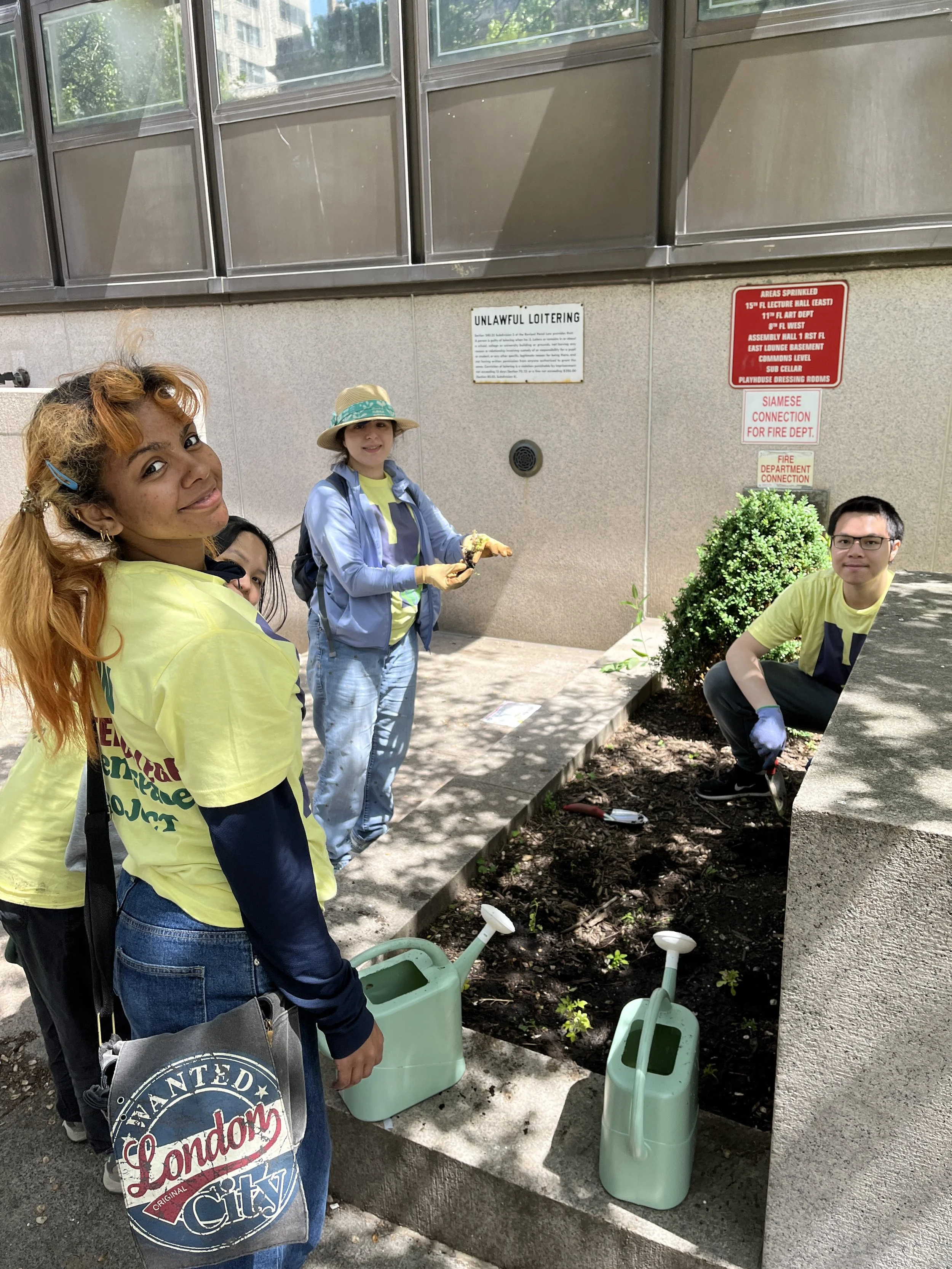 Marinella coordinated with the NYC Parks Department to start an ongoing campus beautification project to revitalize campus street trees and garden spaces with stewardship practices and the planting of native species. Working with alumni Emelyn Joy Talento from SEEDS and alumni Peter Manos Geography Department’s Greenbelt Society, Marinella was able to create an ongoing partnership between students and city governance.